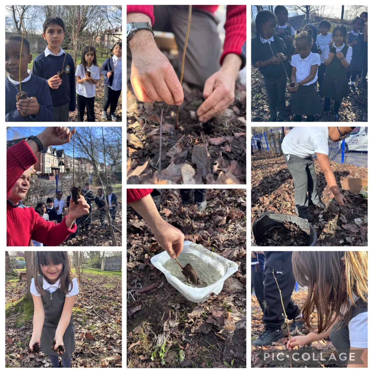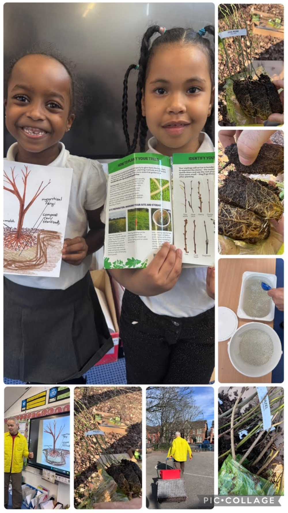 Both year 2 classes and a group of 8 yr5 pupils were involved. They learnt the correct way to plant in terms of positioning, hole depth as well as adding mycorrhizal fungi to the saplings roots, kick starting its symbiotic relationship, which will support its growth and the biodiversity of the soil, making the whole ecosystem more diverse and resilient.